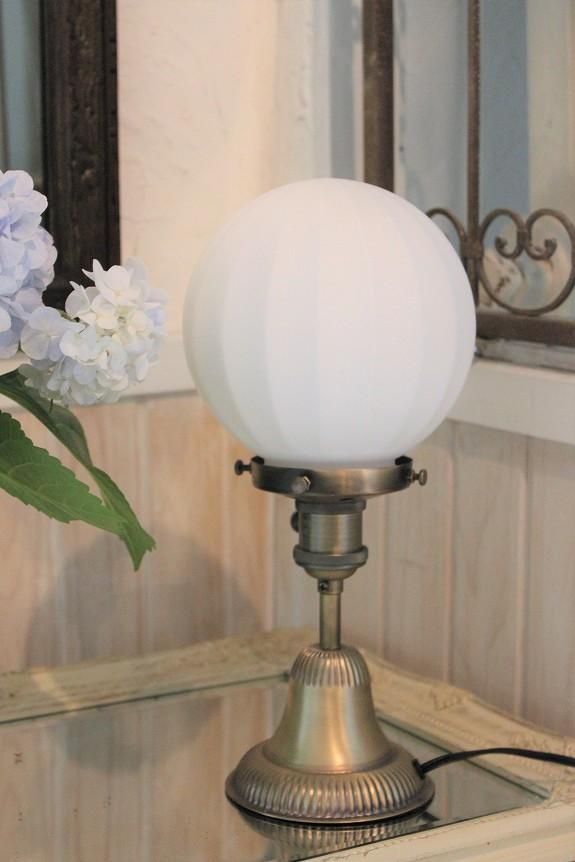 アンティークな色調のレトロなテーブルランプスタンドBと大正ロマンなミルクボウル・ガラスランプシェードのセット